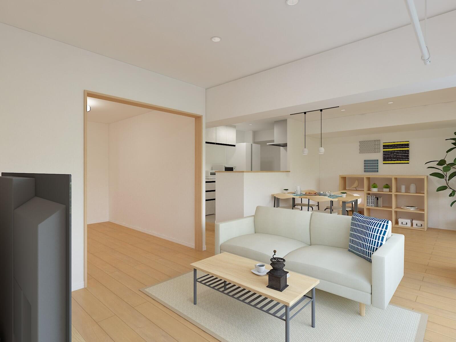 キッチン交換/食器棚新設/ユニットバス交換(1218)/トイレ交換/洗面化粧台交換/全室フローリング貼替/全室クロス貼替/クッションフロア貼替/建具交換/照明&カーテン取付/内窓交換/一部網戸新設/和室→洋室化/ブレーカー交換/換気扇交換/ガスファンコンベクター交換/TES交換/ウォークインクローゼット新設/ロールスクリーン取付 ※リフォーム内容は予告なく変更となる場合がございます。あらかじめご了承くださいますようお願い申し上げます。