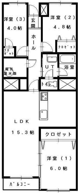 | 間取り | 3LDK | 間取り内訳 | 洋 6・4.8・4 LDK 15.3 |